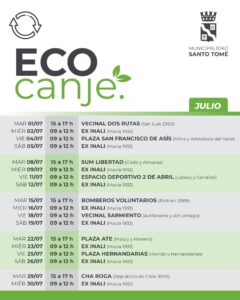 La Municipalidad de Santo Tomé invita a todos los vecinos a participar del programa Eco Canje, una iniciativa que promueve el reciclaje y el cuidado del medio ambiente.